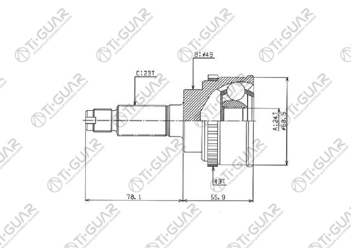 ШРУС наружный /передний левый /правый /TI-GUAR для Suzuki Alto Wagon R 24*49*23; L=78.1mm; TG-9224Z43; (SU-024A43) 4410284G00 4410276G62