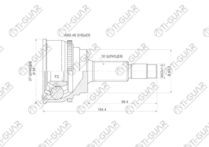 ШРУС наружный /различные /TI-GUAR для Toyota Harrier 1999-2000 2WD; 27*63*30; TG-9566Z48; (TO-066A48) 4342048040 TO066A48 CO7586A